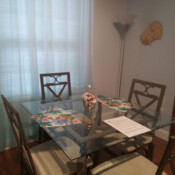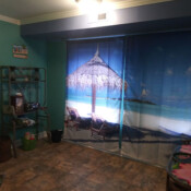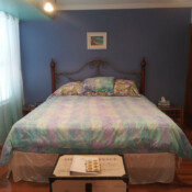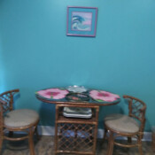 Located in the one-story section of our Inn Port D’Vino property at 22 Brown Street, The Champagne Island Suite is a 750 square foot unit with private entrance. The bedroom has a king size bed with pillow-top mattress. The living room has a 42” Plasma TV with cable and VCR/DVD combo (also visible from the bedroom), sleeper sofa, and dining area for 4. A separate room plays host to a 2 person jetted hot tub. The back of the unit has your private bath with shower/tub combo and small kitchen with stove, microwave and refrigerator, which is stocked with breakfast food for use at your leisure during your stay. This tropically-decorated condo-style unit can accommodate up to 4 people.